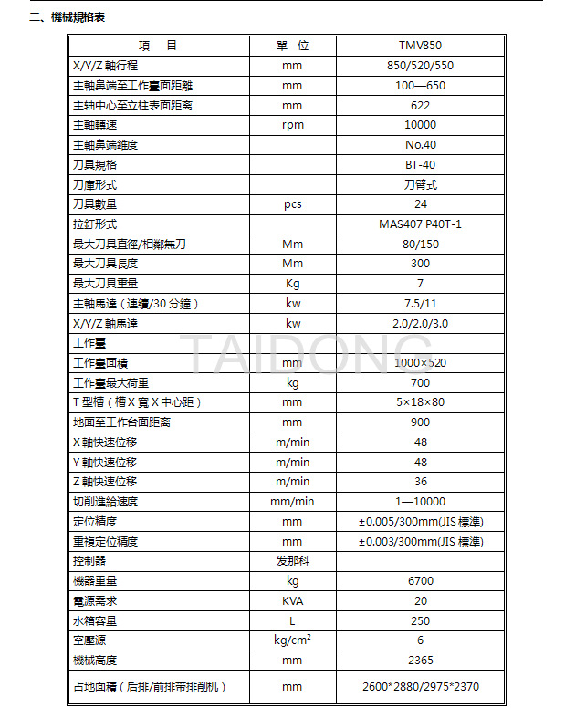 6. 快速位移X/Y/Z:48/48/36m/min。(本参数为配**系统)